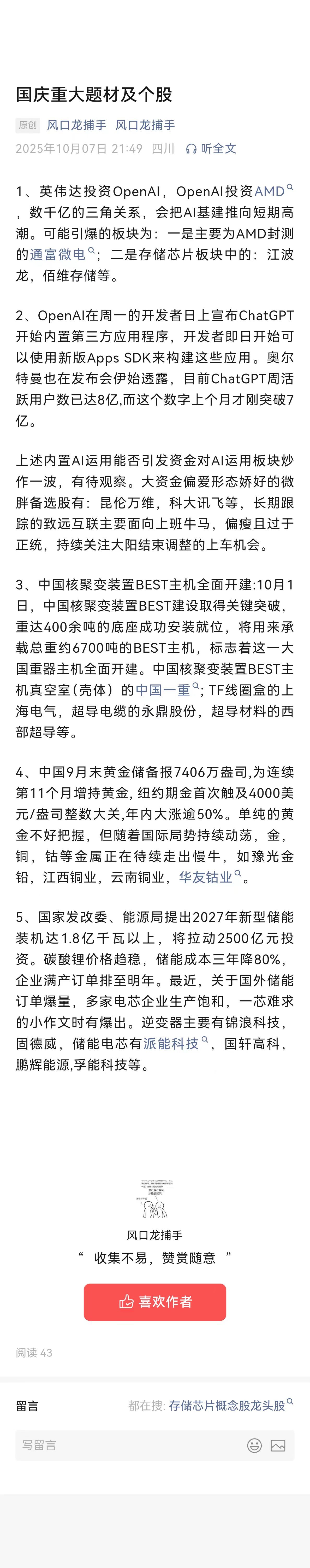 国庆后翻倍题材及个股前瞻!