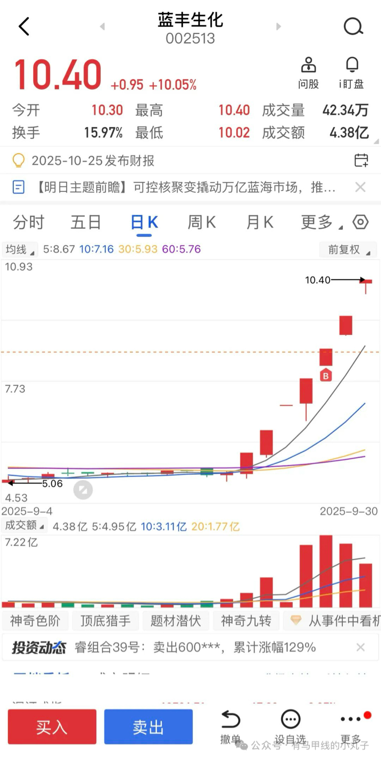 情绪接力上,龙头蓝丰生化打出了七板的高度,本人26日介入,29日又喊小伙伴加仓。但后续就是先手局了,加速没有加仓点,断板就止盈了。