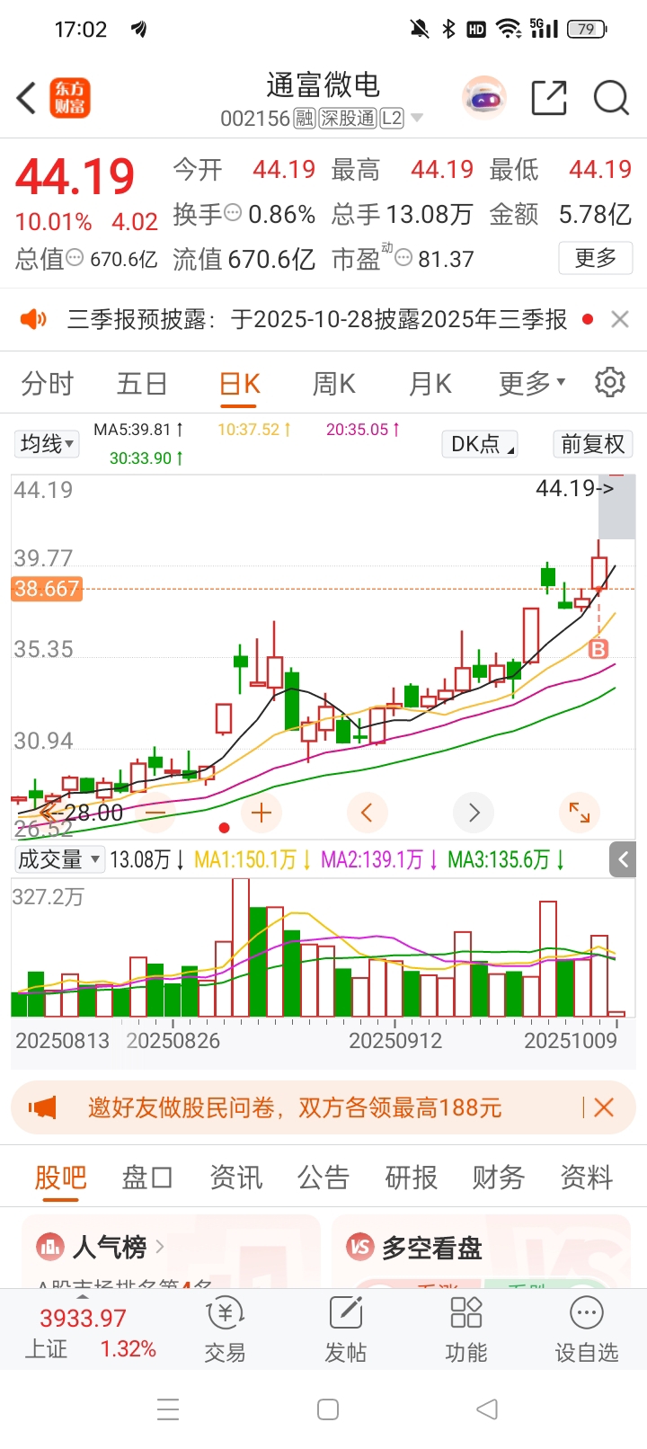 $通富微电(SZ002156)$ 还好今天有你,不然今天持仓还要绿,明天再来一个一一字开不过分吧!
