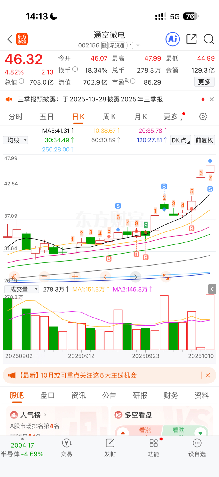 $通富微电(SZ002156)$ 低买高卖,把握节奏,10月不要买股票了,清仓