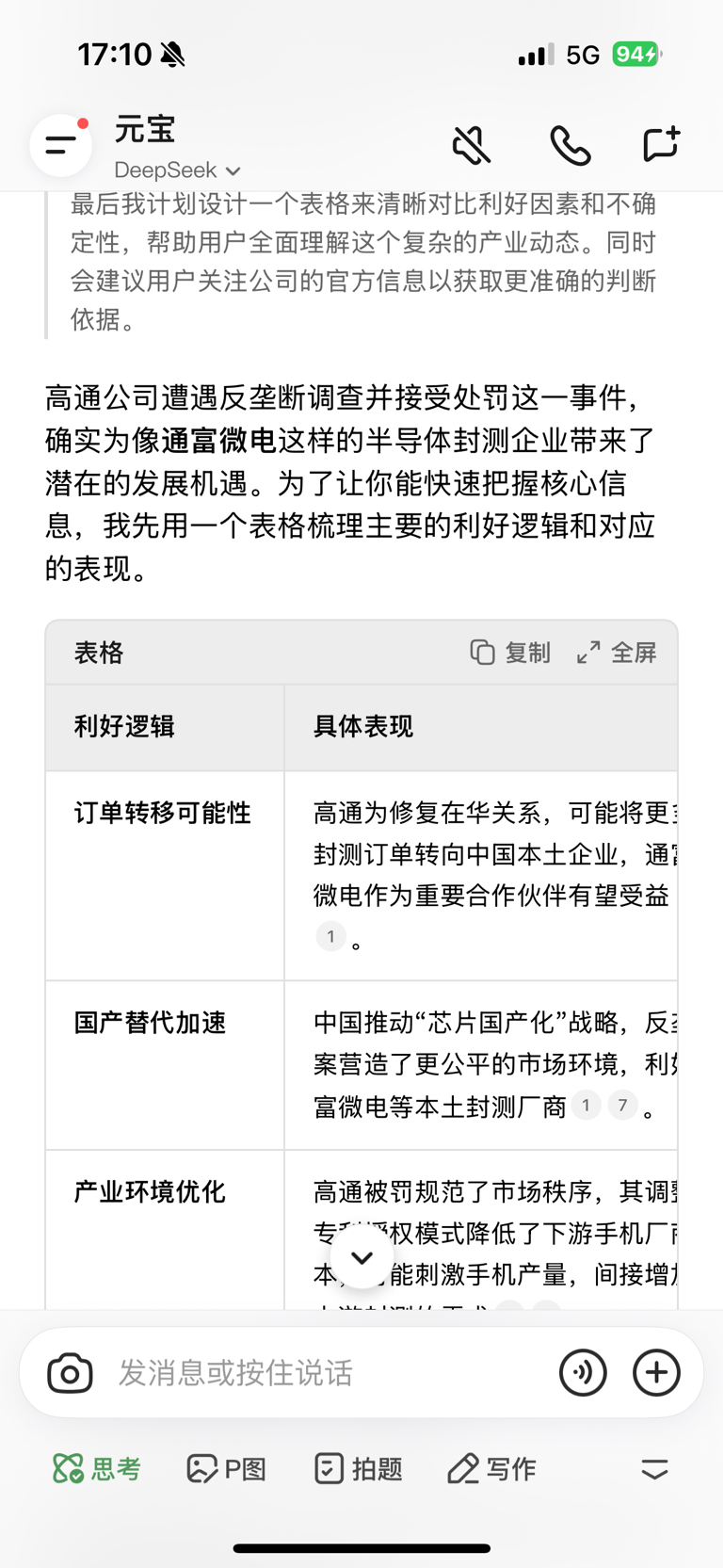 $通富微电(SZ002156)$ 大利好来了!高通遭反垄断法调查利好通富!