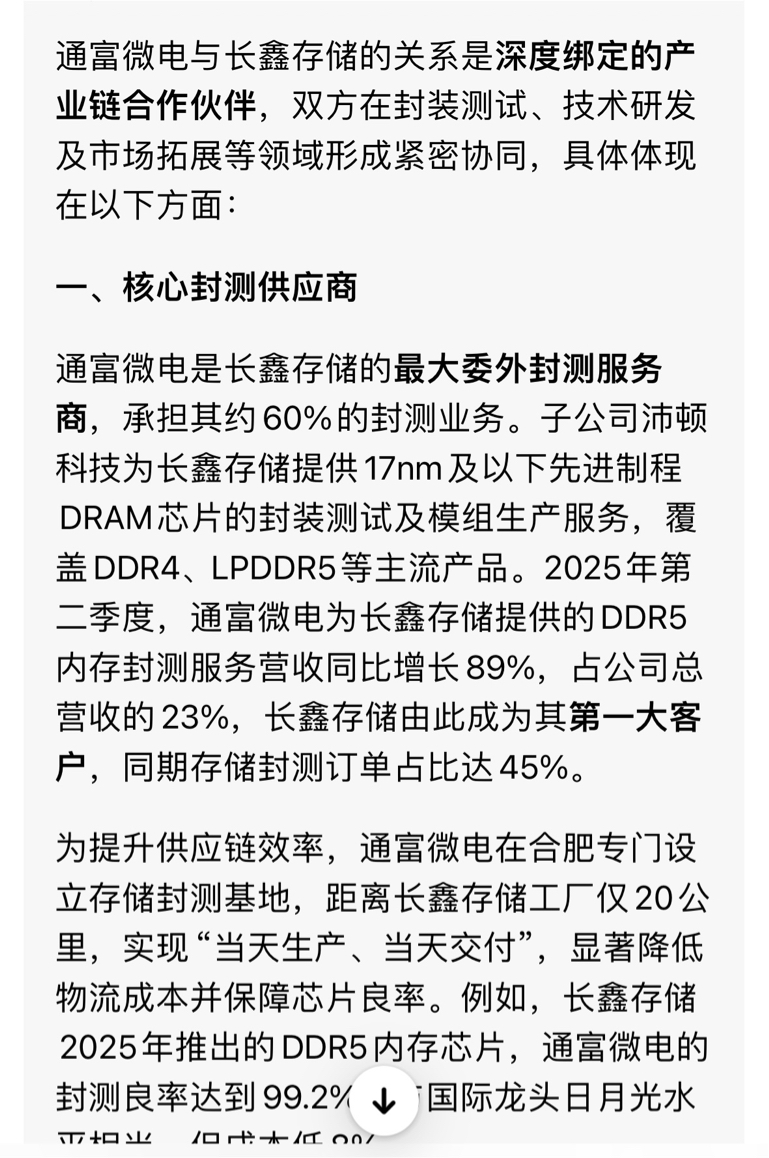 $通富微电(SZ002156)$ 通富微电与长鑫存储的关系已超越单纯的供应商与客户范畴,形成技术共生、产业共荣的战略联盟,共同推动国产存储芯片产业的自主创新与全球竞争力提升。