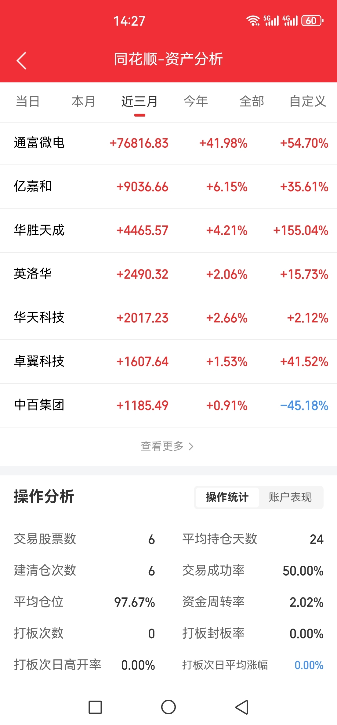 感谢通富微电让我解套了,又盈利了几个w。周五47.27清仓了。有机会还会接回来,