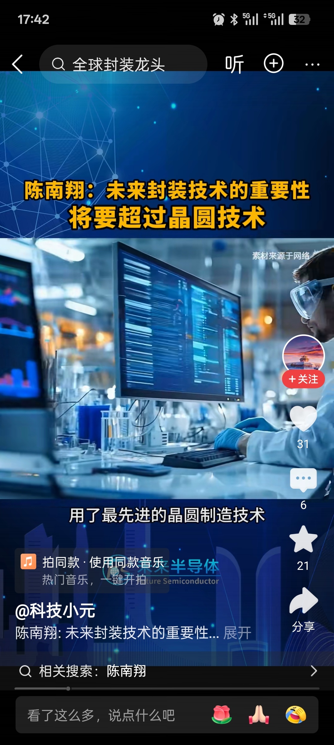 $通富微电(SZ002156)$ 封装技术未来要超越晶圆技术