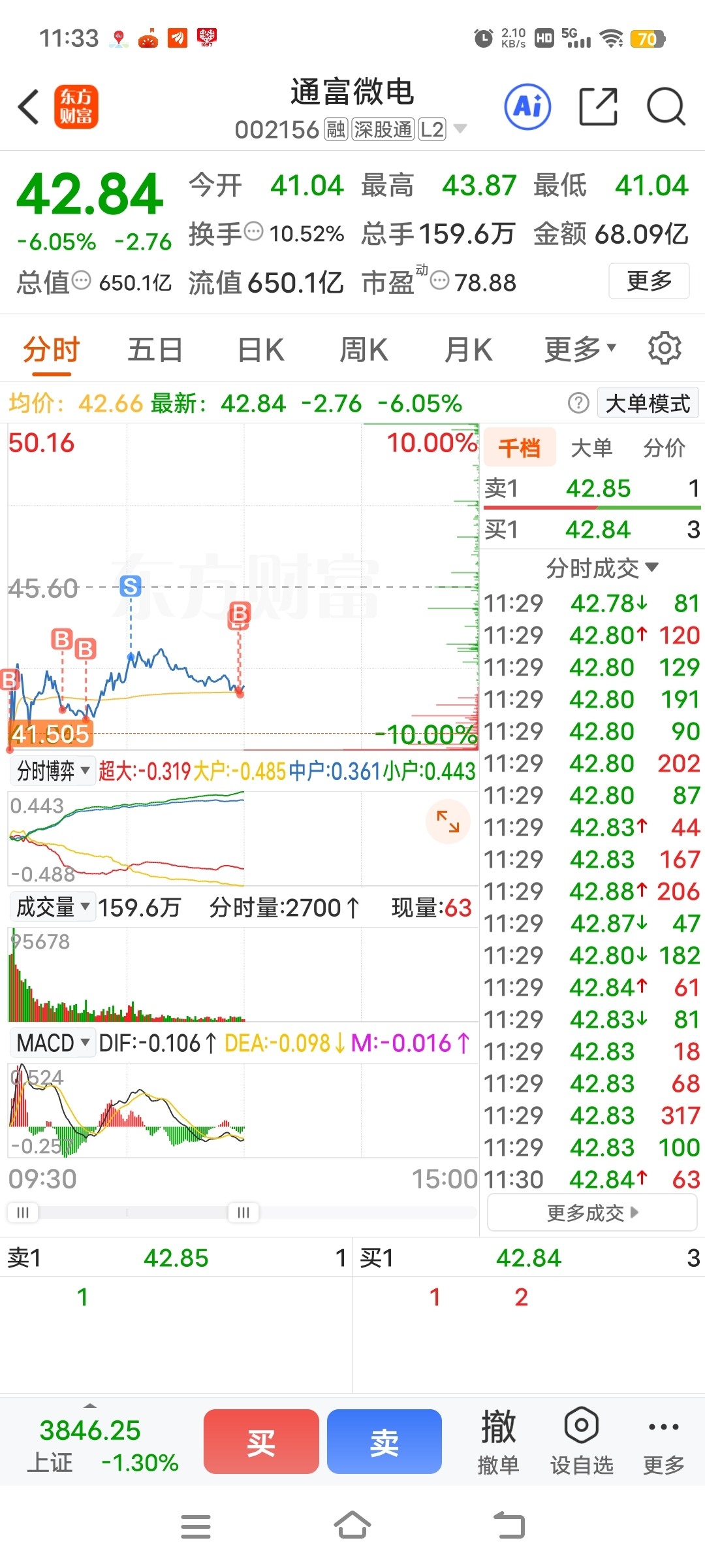 $通富微电(SZ002156)$ 又打满了,来呀!跌停呀!