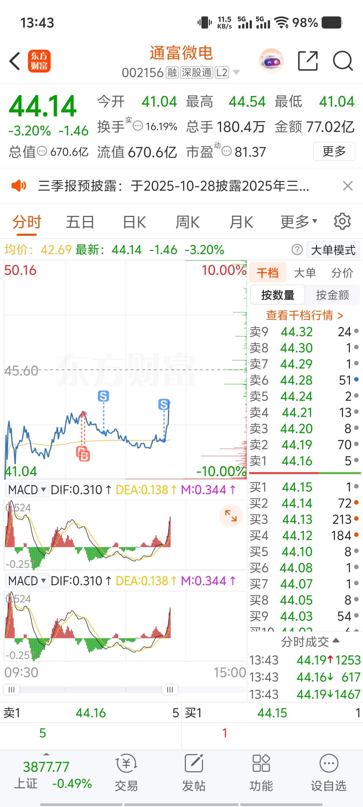 $通富微电(SZ002156)$ 真就差我这点,重仓刚卖,就拉?