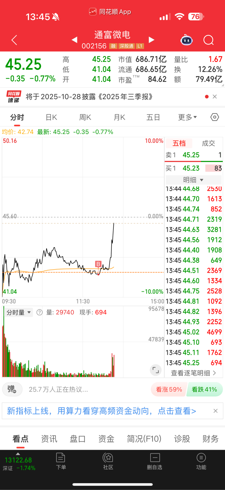 $通富微电(SZ002156)$ 第一次来 请问各位前辈 目标价50到不到
