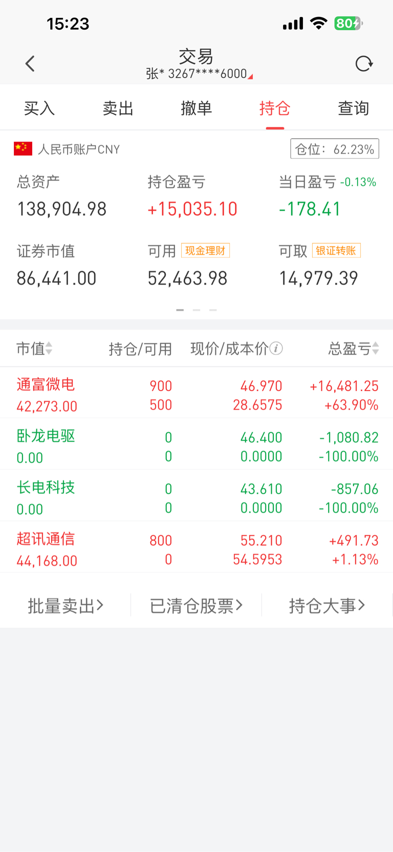 今天还是小看了通富,但凡他竞价不把缺口补了,我都直接买进去了。明天集合竞价,大概率,今天水下进的短线筹码要获利砸一下,最好到5日线附近,我要把今天丢掉的筹码接回来。底仓4万多就不动了。
