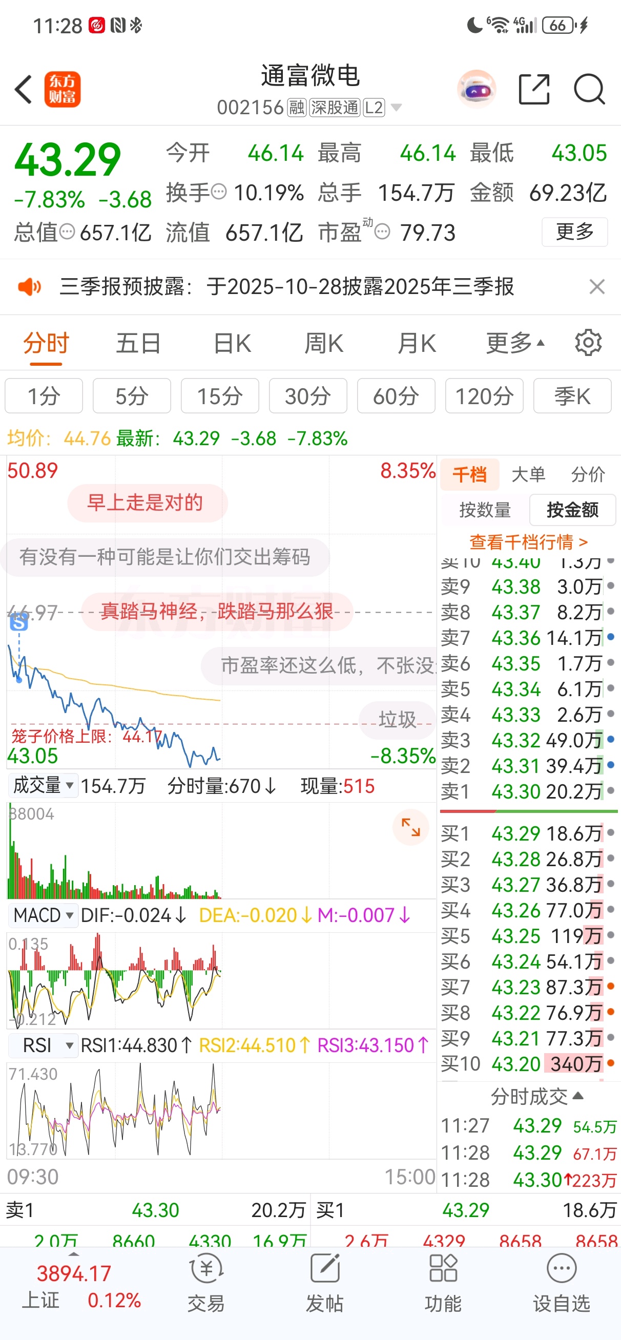 最近这三天,第一天放量长上影线,第二天诱导散户抢筹放量大阳线,今天直接闷杀。短期