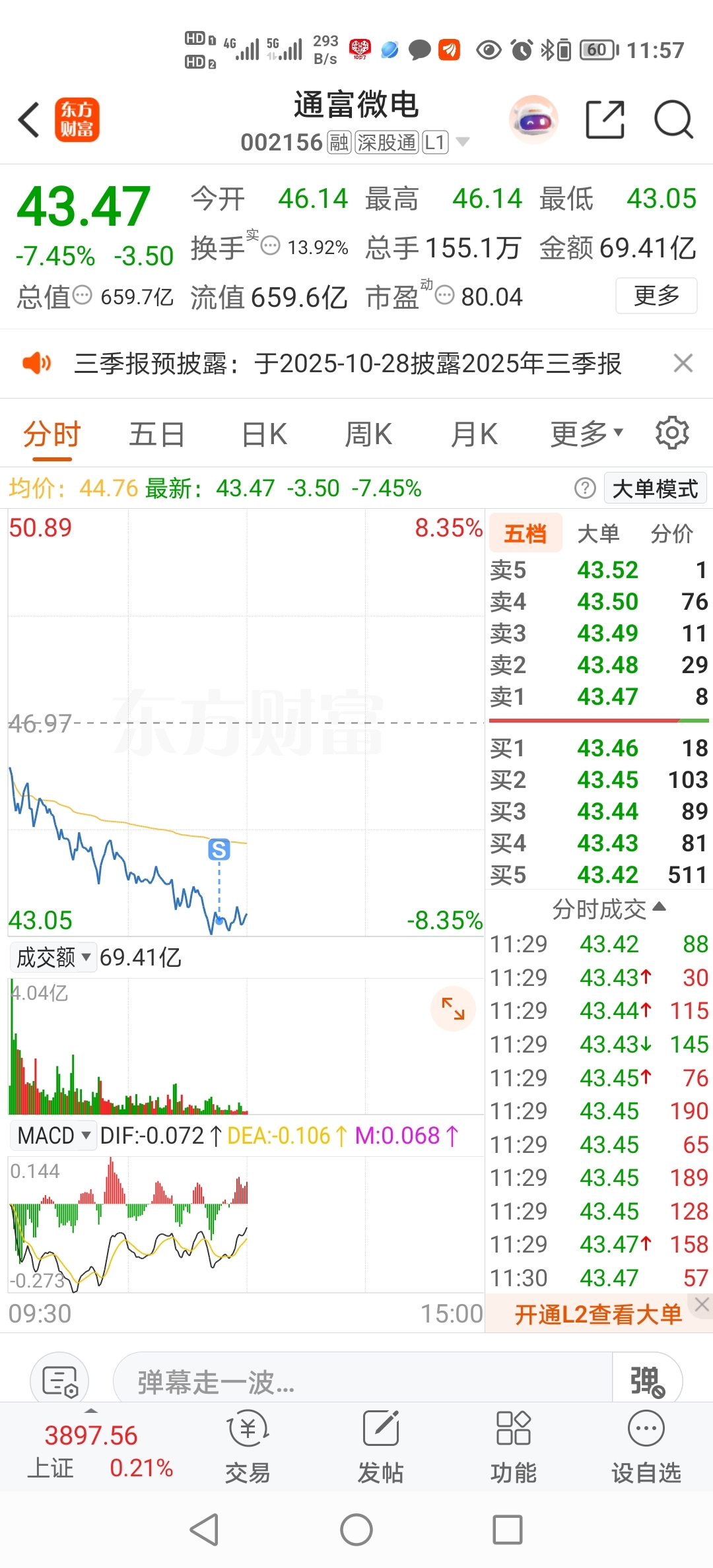 $通富微电(SZ002156)$ 可以拉了,傻猪力