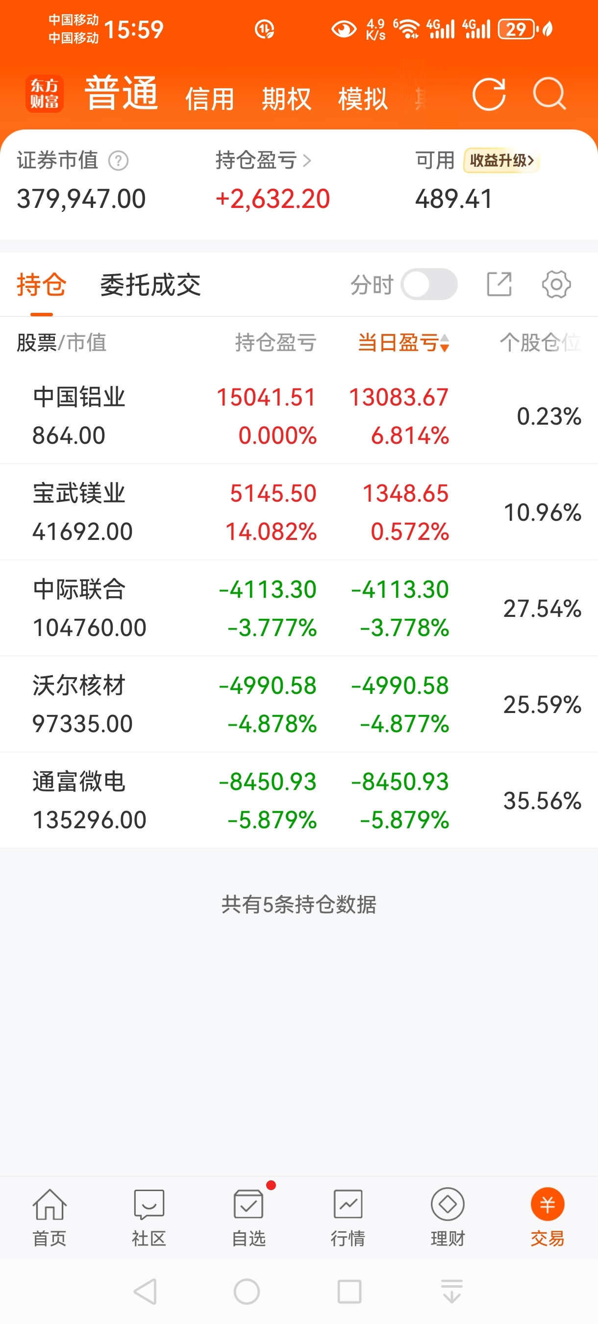 让你们心里平衡一点,昨天下午进铝业感觉有一波开盘很好卖点也行,为自己的认知买单操