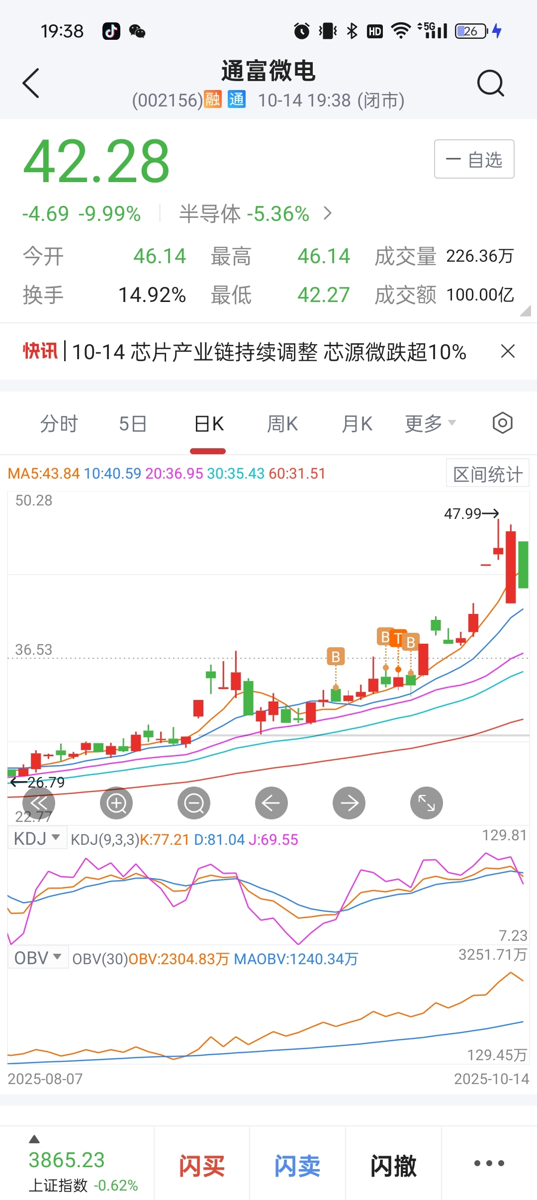 $通富微电(SZ002156)$ 新来刚进来就跟着吃大面,没有30个的收益,还敢追高,主力请吃大面。这段时间都起不来了,都是阴跌,别问我怎么知道了,一直都是这样的。不用找下跌原因了,就因为你来了