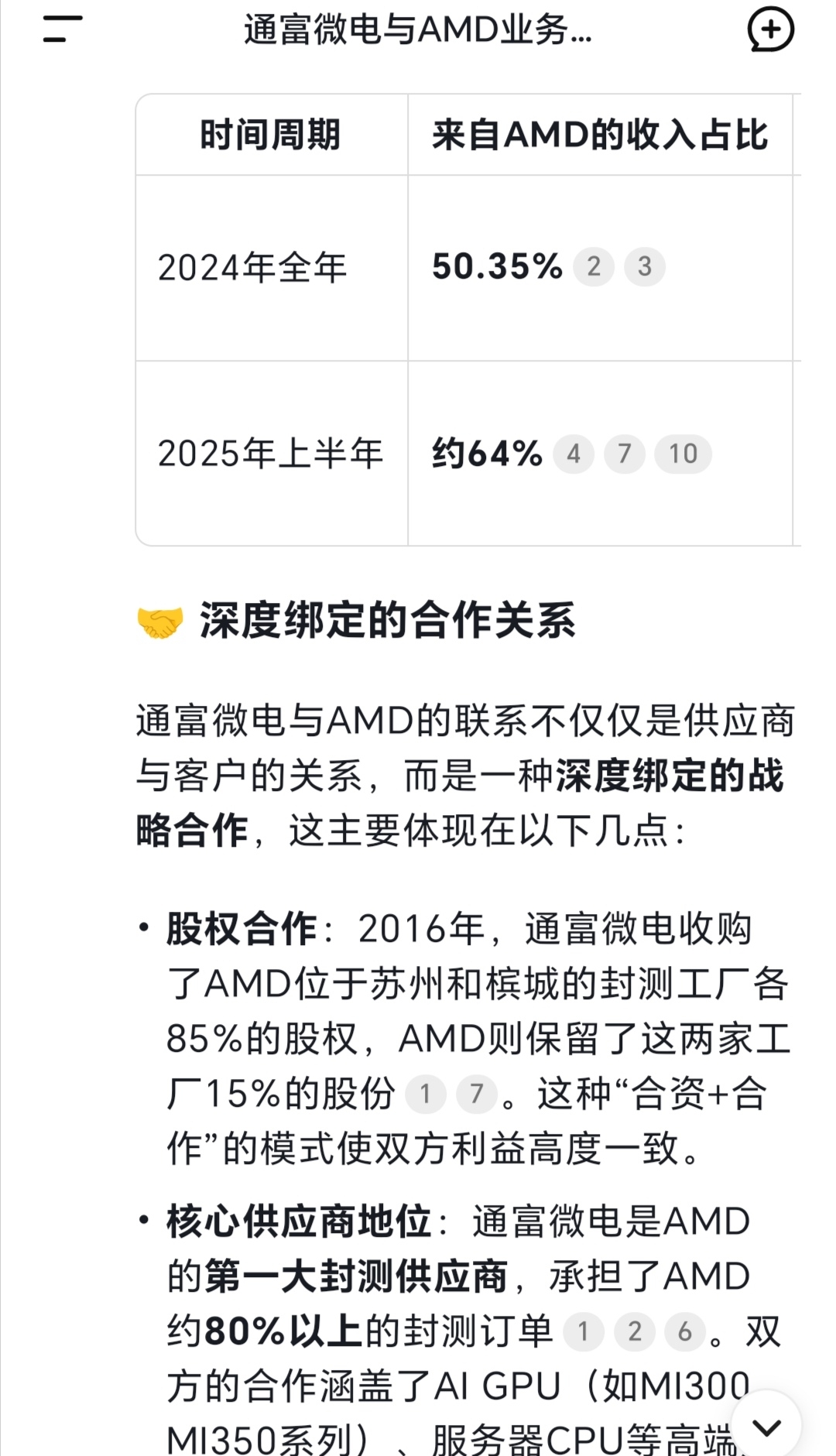 通富微电承担了amd80%以上的订单。今年有64%收入来自amd
