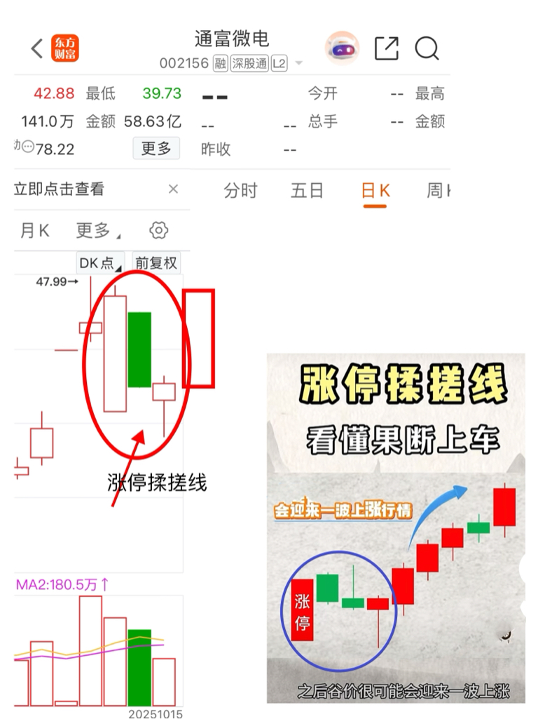 涨停板揉搓线,往往出现在主升浪要加速前主力在进行暴力洗盘操作,即个股通过前期的一段上涨,已经吸引了较多的散户买入,主力为了洗掉这些获利盘散户,减轻个股后期上涨的压力,利用高控盘筹码优势做一个上下揉搓线,让散户恐慌,抛出手中的筹码,从而达到洗盘的目的,特别是用跌停板加长下影的揉搓组合线,基本可以洗掉80%的短线客。#炒股日记# #复盘记录#