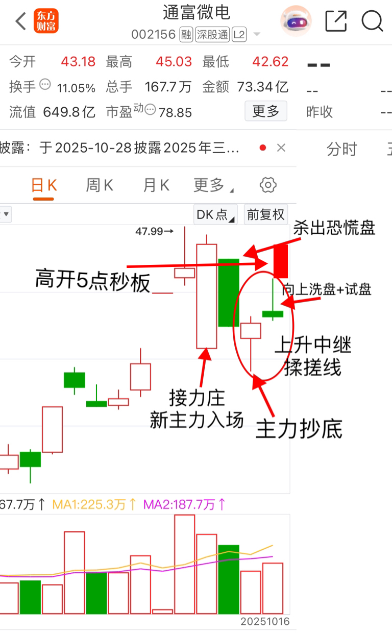 $通富微电(SZ002156)$ 明天99%高开秒板!我画图伱评一评!预判依据:跌停+上下揉搓线不坚定筹码已经洗干净了!#收盘点评# #复盘记录# #强势机会#