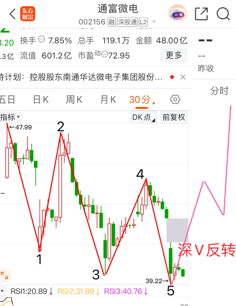 $通富微电(SZ002156)$ 五浪回调洗盘已经到位了,午后深V,午后大盘3874就是通富反转之时!#复盘记录#