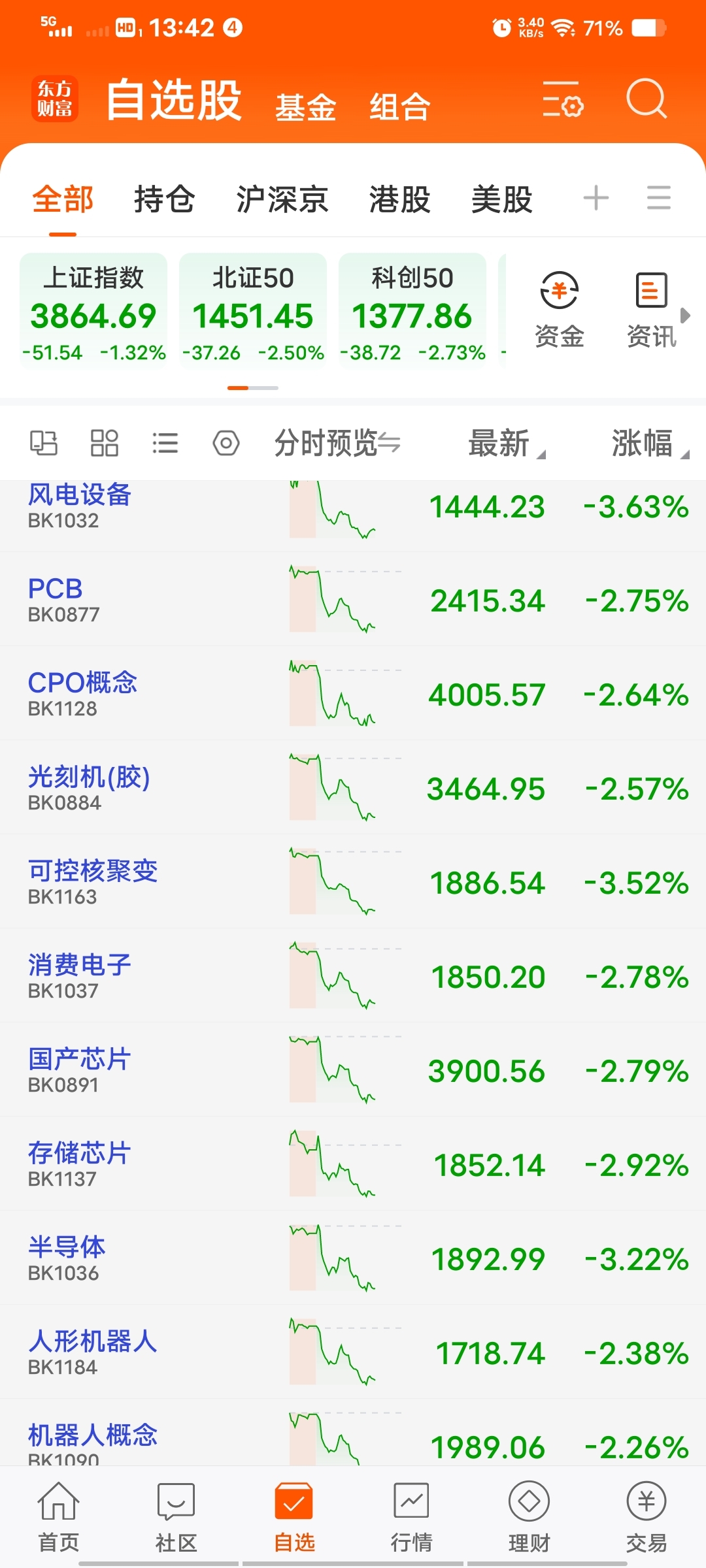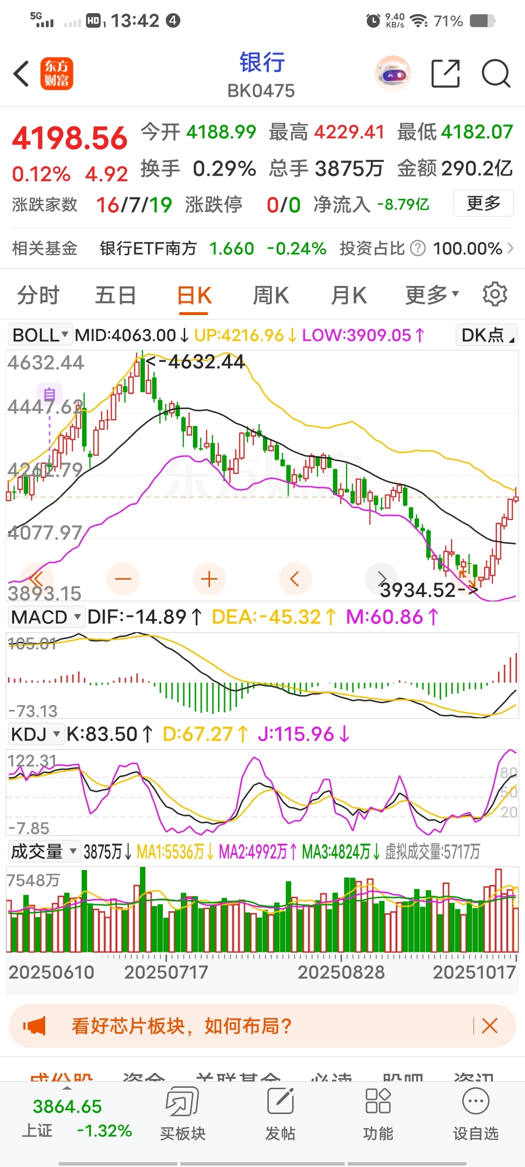 $通富微电(SZ002156)$ 今天动不了,今天被玩死了,利润全没了,目前还倒贴700,已经清仓,尾盘或者周一看情况再玩,今天极差,怕的是你从这边出来,管不住手,又去那边吃面,全都在跌,估计要跌到收盘了,还有一个银行碰到布林线上轨了,银行要回调,下周大盘不会这么差了