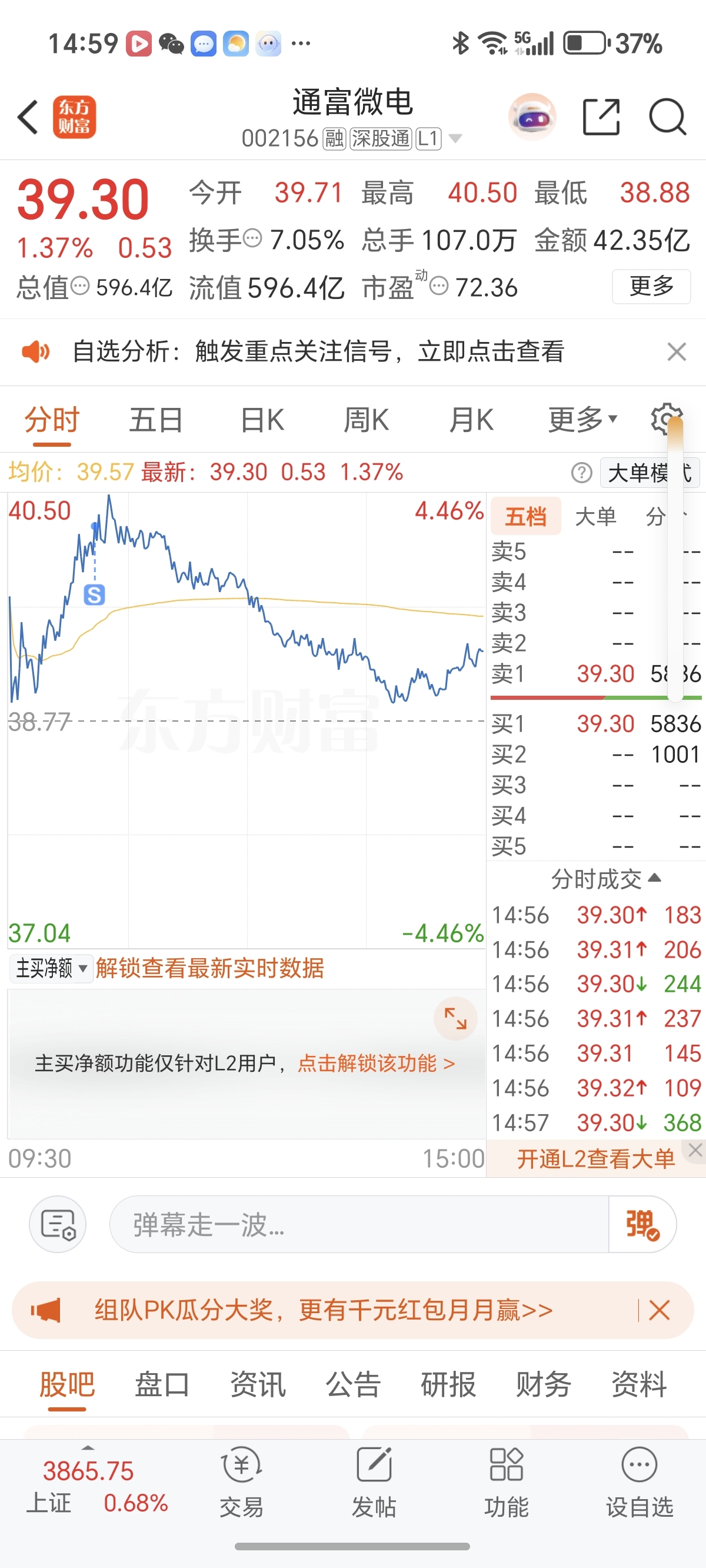 $通富微电(SZ002156)$ 走了,留下来的发财,一只票44卖了,今天到了103,另一只38.9卖了,到了110,拿不住根本拿不住