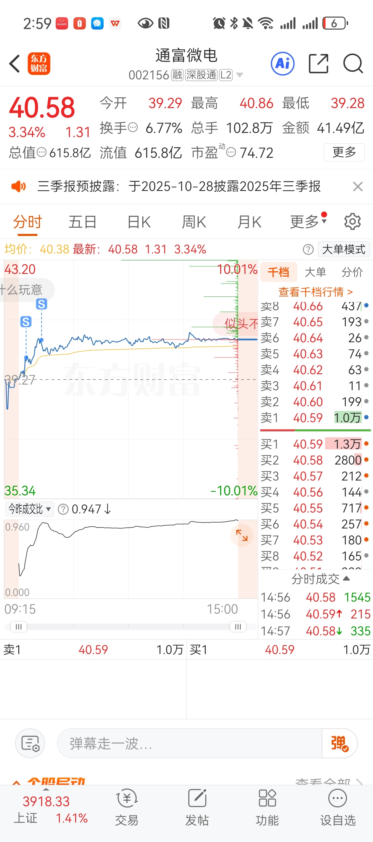 $通富微电(SZ002156)$ 一点T的空间都没有,厉害