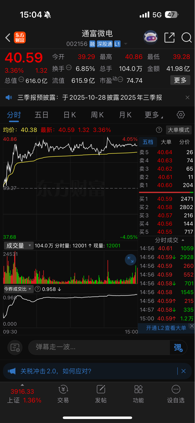 $通富微电(SZ002156)$ 收盘上方压力单,全撤单,厉害
