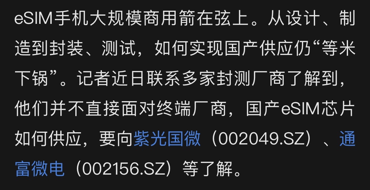 $通富微电(SZ002156)$ eSIM手机