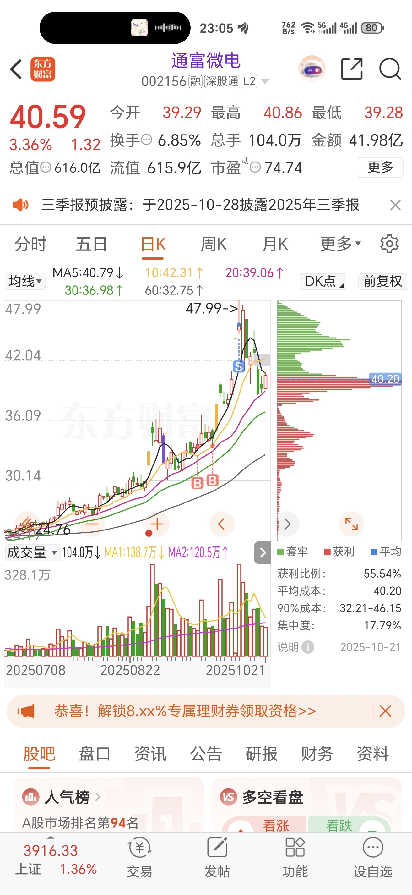 $通富微电(SZ002156)$ 感觉调整差不多了,明天可以接回来了
