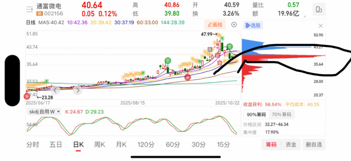 $通富微电(SZ002156)$ 有没有技术大神解答一下这个筹码是怎么出来尖峰的呢,这几天成交量并不大呀。而且一字涨停那根筹码峰也还在,那天成交量也不大。小白不懂勿喷