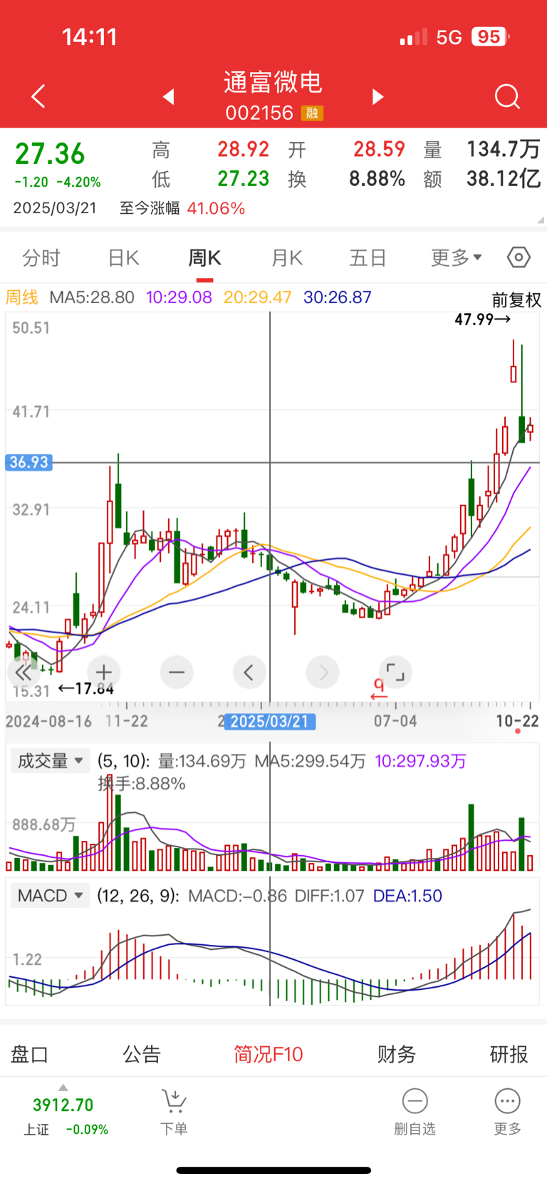 $通富微电(SZ002156)$ 拿着的贝泰妮不涨呀,跌了四年了。我也想玩科技股。打算已37的天价买入