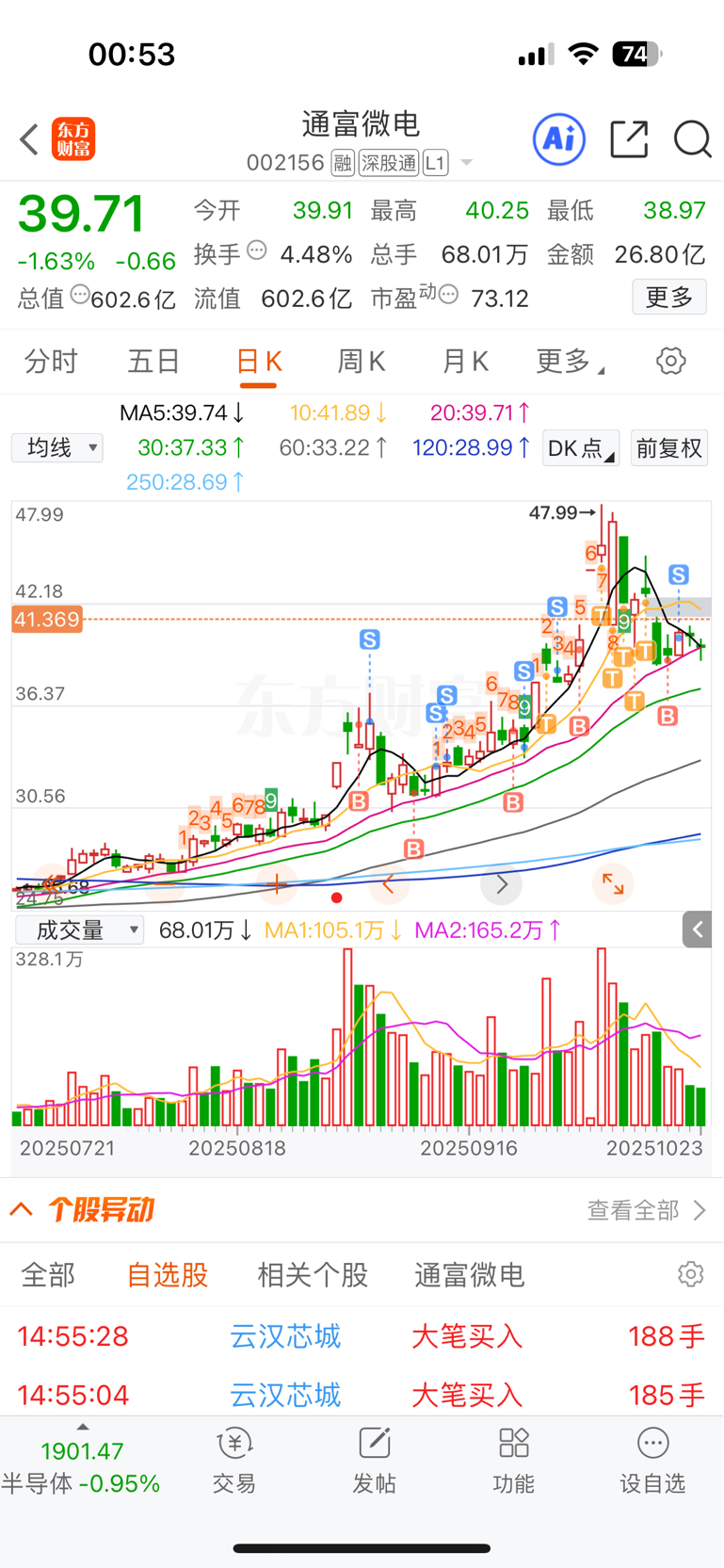 $通富微电(SZ002156)$ 20日线向下就清仓走人
