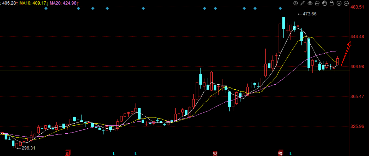 长川是做封测的测试机的,而华创是做刻蚀和薄膜沉积环节,的刻蚀机。都是上游设备商业。人工智能带动芯片的需求,而芯片制造商比如中芯国际,华虹等扩产,就会带动设备需求增加,这就是华创的业绩来源。技术面上,北方华创第二波趋势突破了前高400之后,回调就支撑在400的位置企稳,这里将是一个长期有效的支撑位,所以该位置附近可以吸筹,周五开始股价也是启动了新一波的趋势,接下来将站上月线,冲击前高。同样的,周五反弹的幅度还不大,这就是机会,现在还可以吸筹。