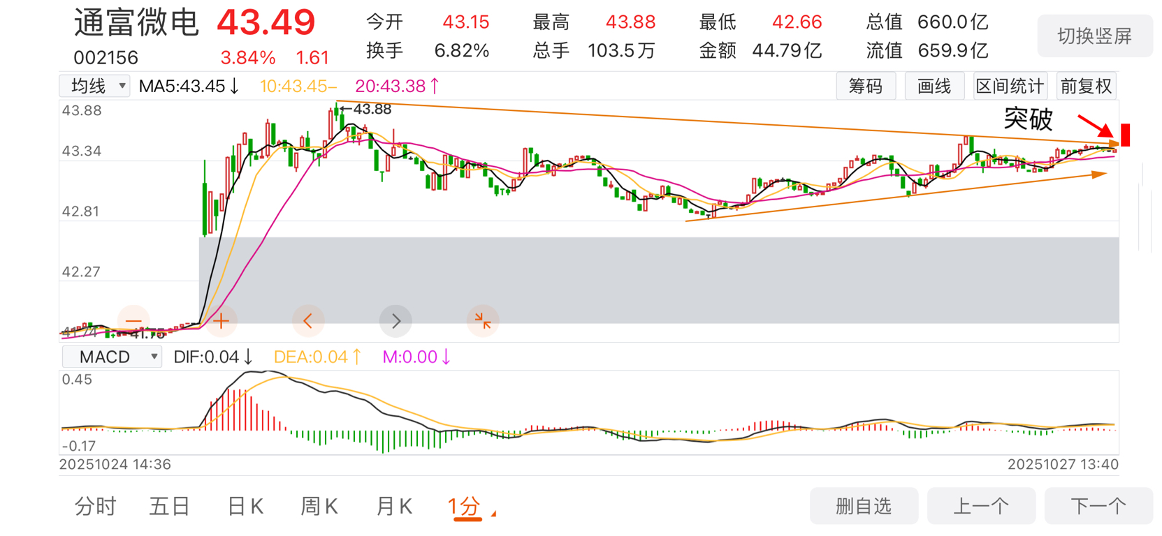 $通富微电(SZ002156)$ 突破回踩确认起飞,拉直线上升