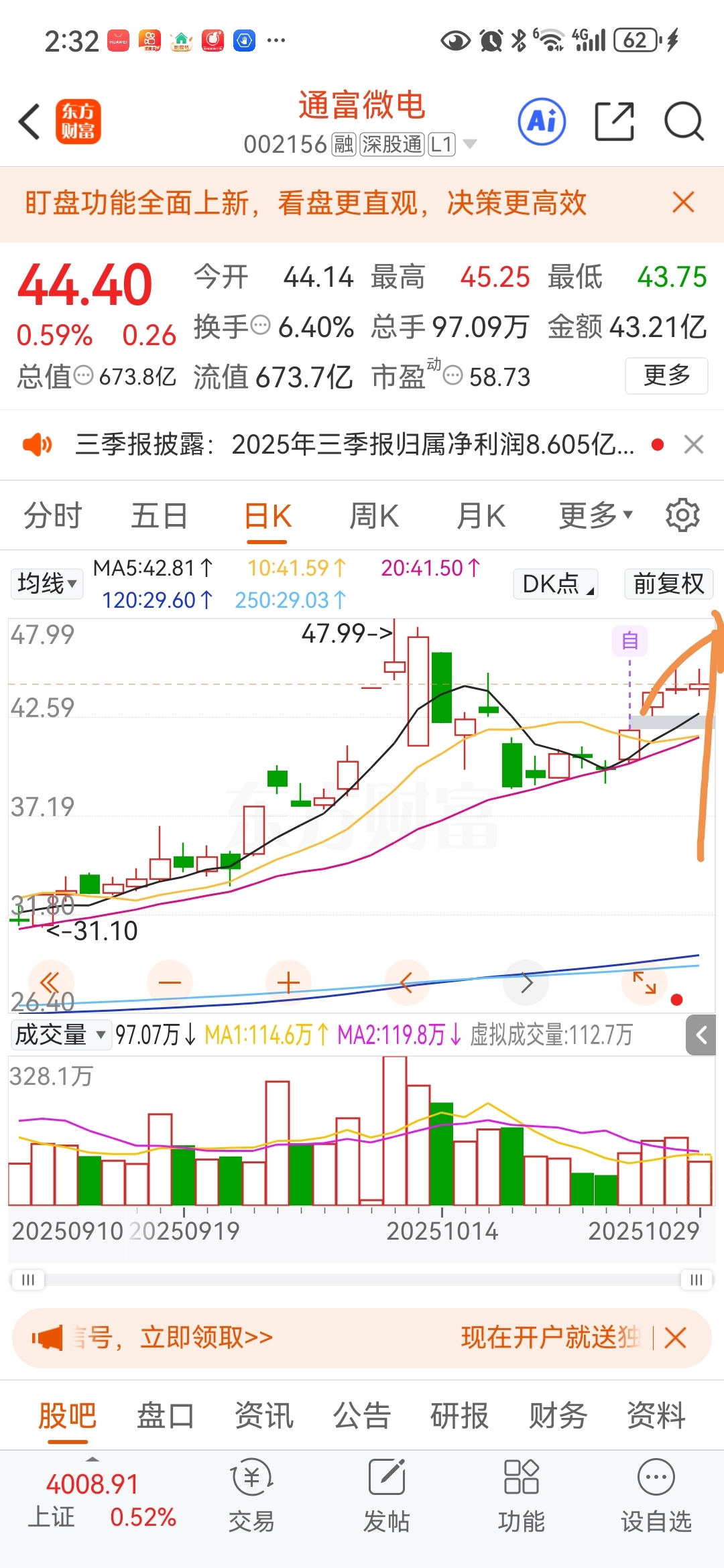 $通富微电(SZ002156)$ 明天跳空高开