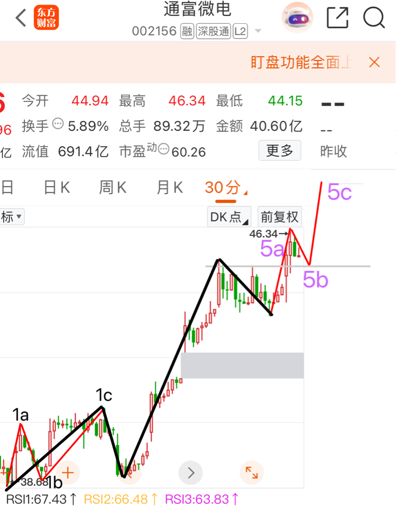 $通富微电(SZ002156)$ 午后30分钟5c拉直线收7个点的光头大长阳;#复盘记录#