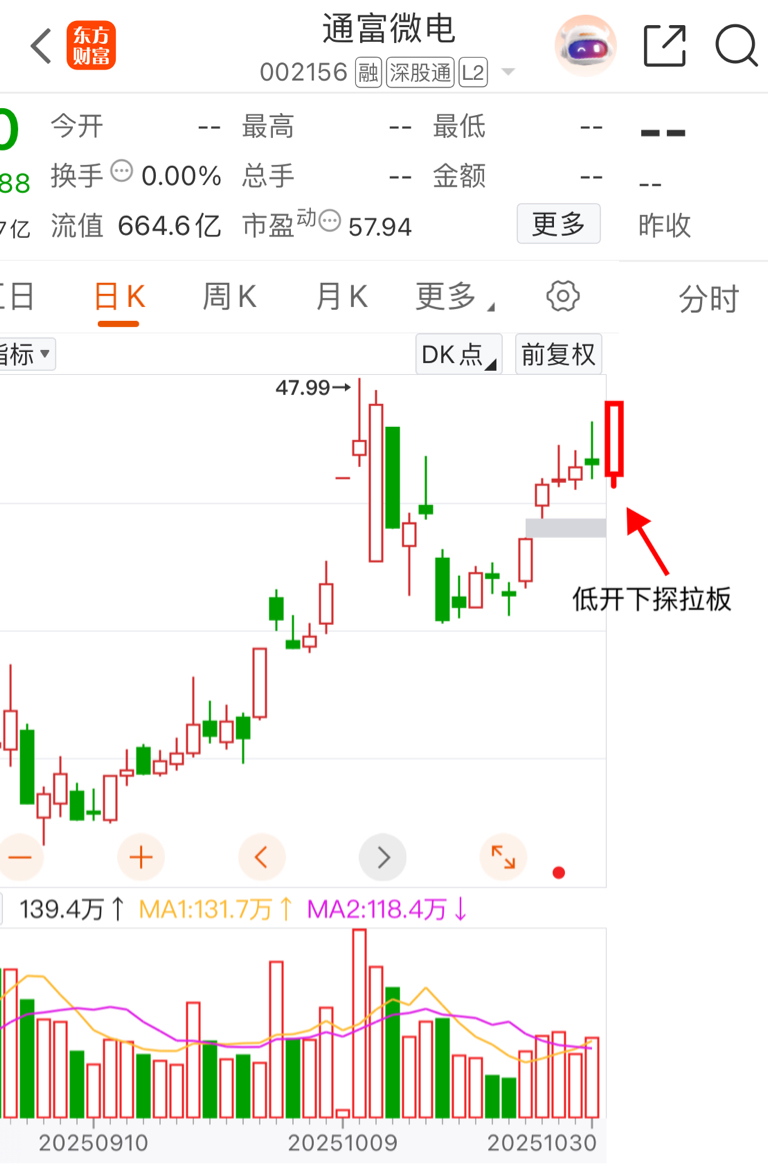 $通富微电(SZ002156)$ 低开下探回升秒板!下探抢筹