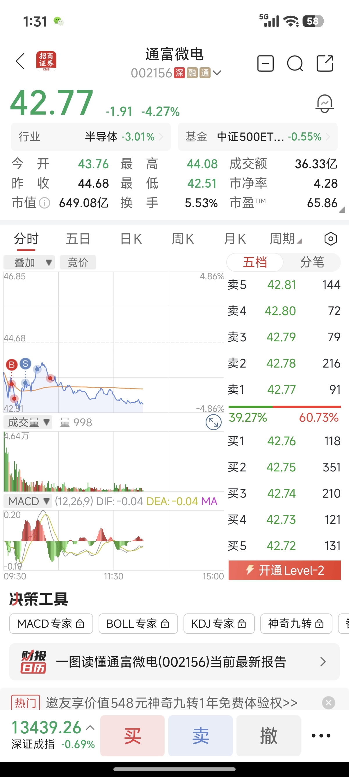 $通富微电(SZ002156)$  完蛋,几天涨的,今天一天还回去