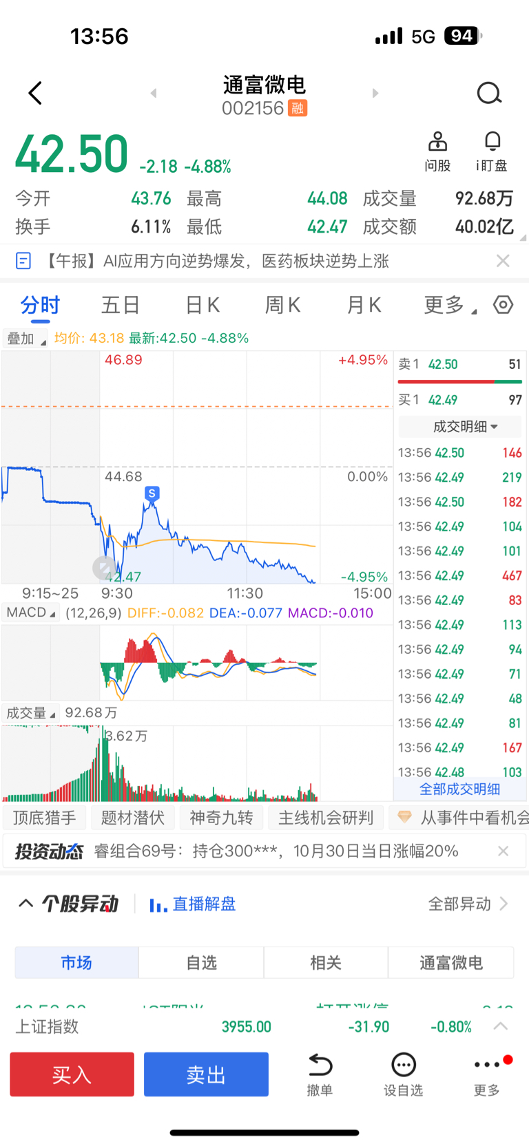 $通富微电(SZ002156)$ 及时止损,感觉要回调一段时间,尾盘加办成仓,堵一下周一