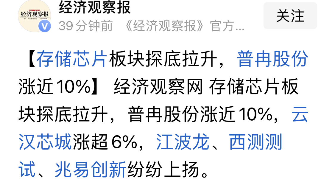 存储芯片板块探底拉升!通富微电午后直线拉升!
