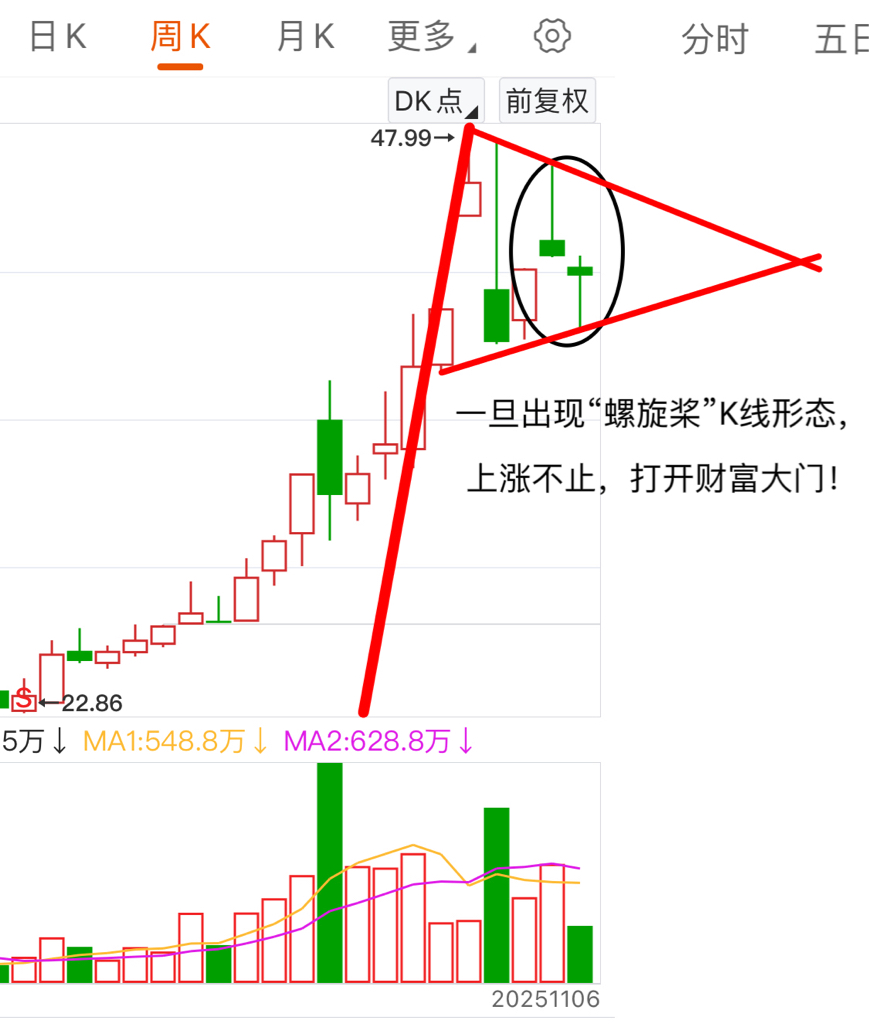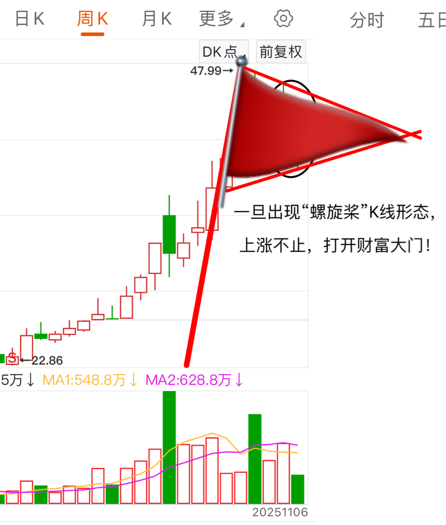 股票一旦出现直升机“螺旋桨”K线形态,上涨不止,直升机撒钱!