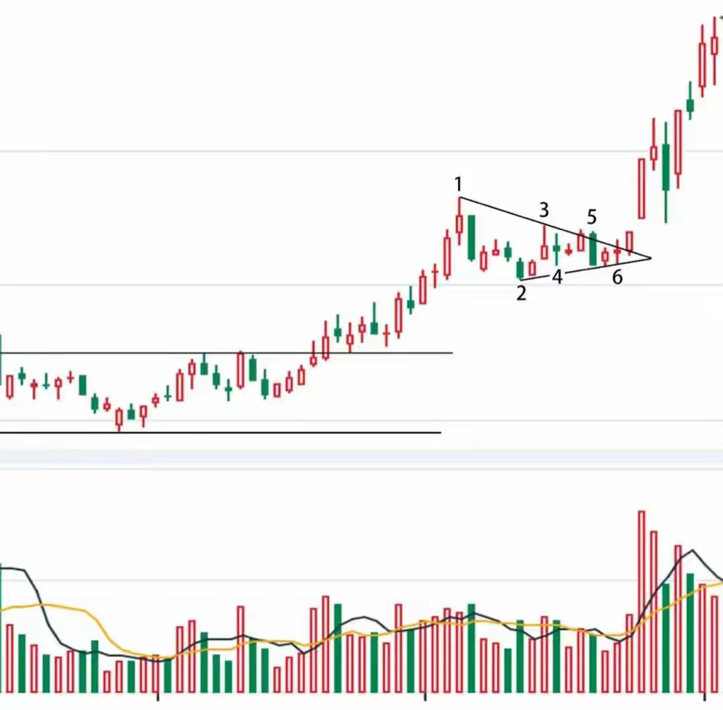 周K线三角旗形上升中继!加上搓揉线组合同时配合缩量状态,随之而来的是主升段的急升行情。如果旗形加“上升螺旋”则上涨的势头会更猛,是急涨的前兆。一旦出现"揉搓线"形态,别轻易交出筹码,股价必然上涨到你害怕的不要不要为止,绝无例外;#复盘记录#