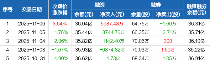 通富微电:融资净买入5987.48万元,融资余额36.04亿元(11-06)