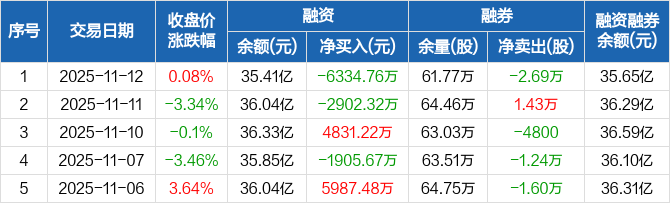 通富微电:融资净偿还6334.76万元,融资余额35.41亿元(11-12)