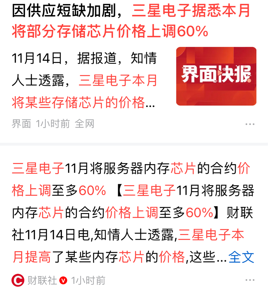 周末利好!因供应短缺加剧,三星电子据悉本月将部分存储芯片价格上调60%;今天是大