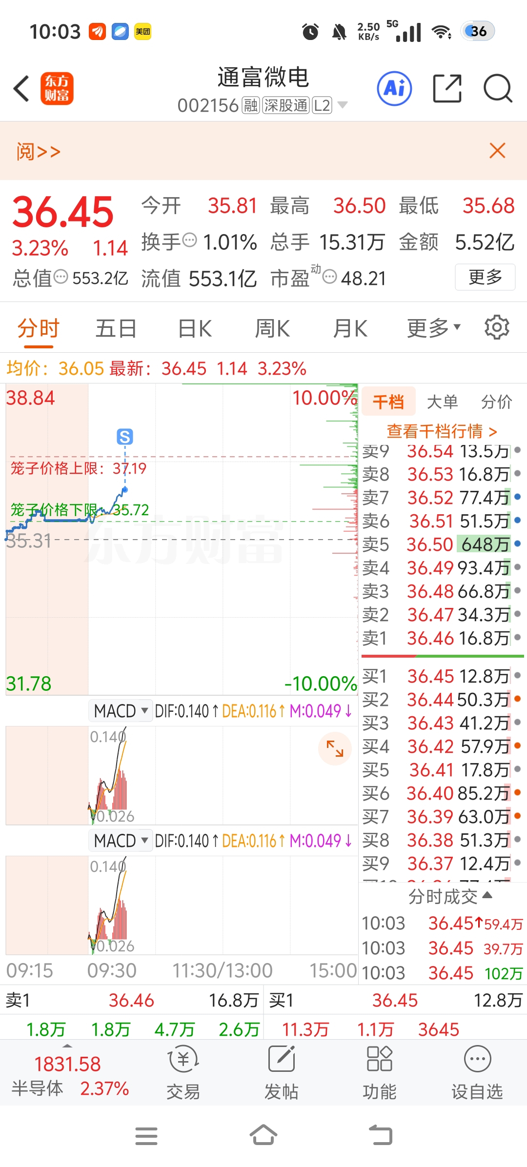 $通富微电(SZ002156)$ 昨天低吸补仓,今天跑了,抛压还是会有,看有没有低吸机会