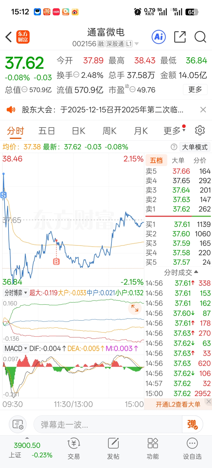 $通富微电(SZ002156)$ 早上看他越涨越不敢买,结果咬咬牙买了,又跌了