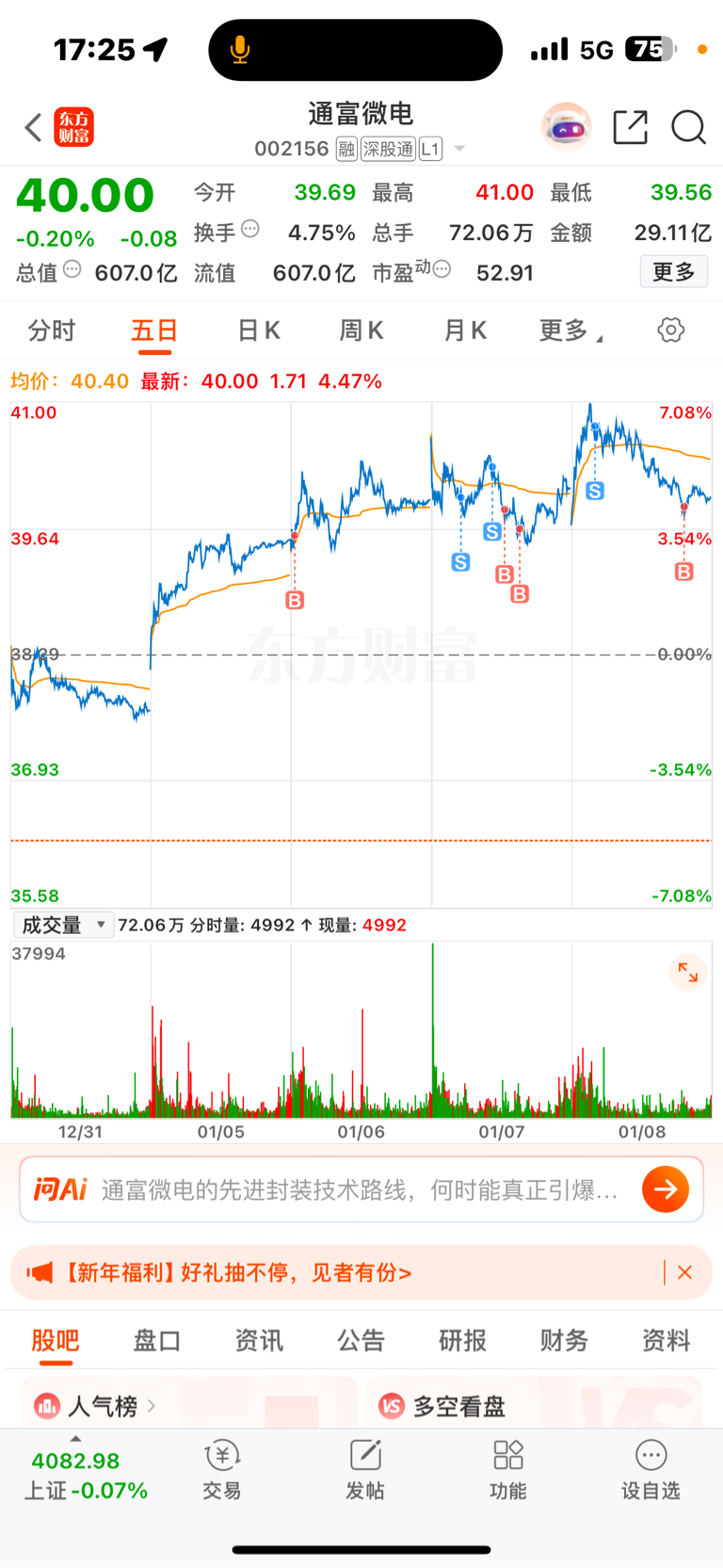$通富微电(SZ002156)$ 每天做t 快乐完了