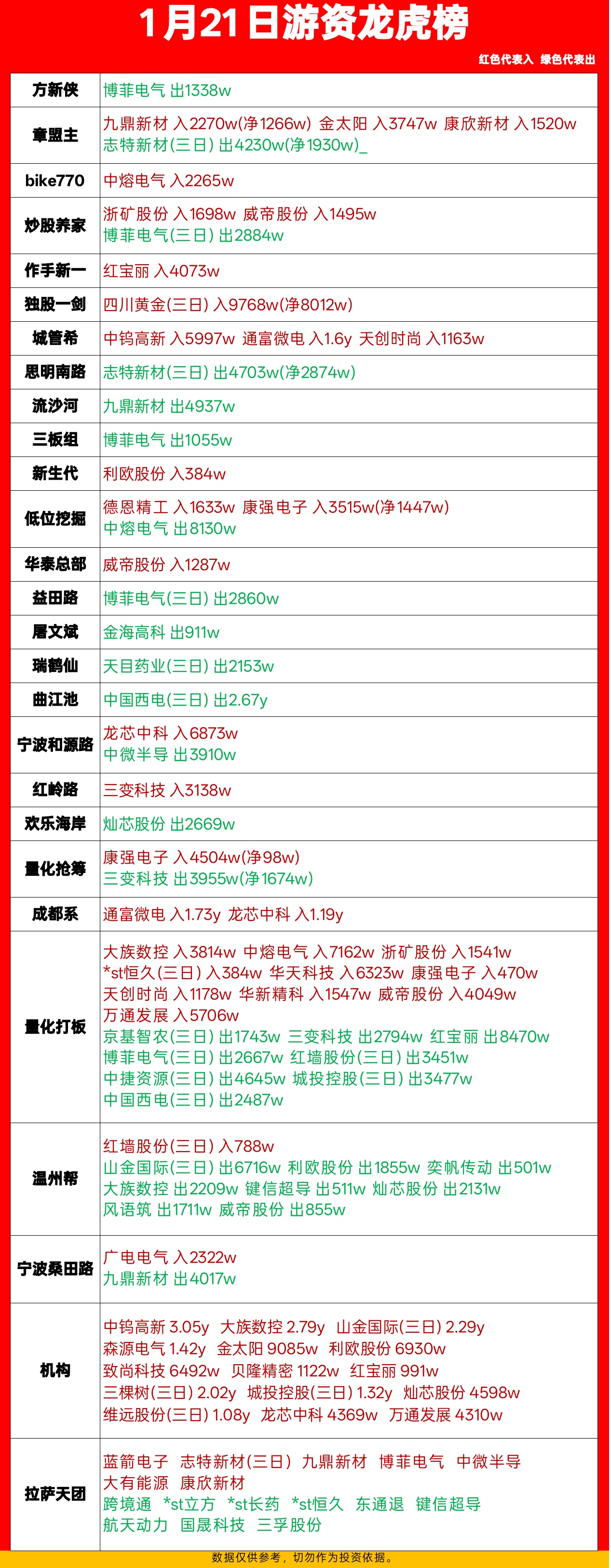 1.21游资龙虎榜。