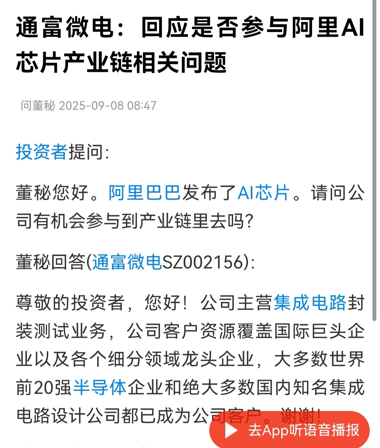 $通富微电(SZ002156)$ 查了一下,感觉还是通富微电可能性最大其次是华天科技