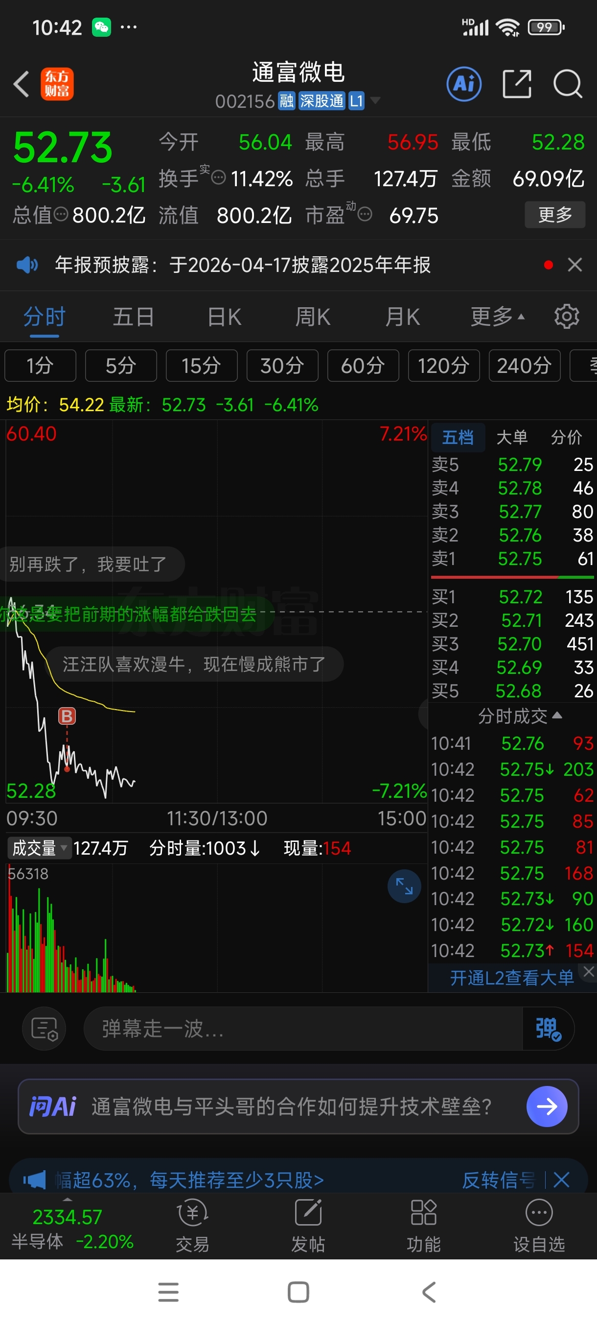 $通富微电(SZ002156)$ 我赌你的枪里没有子弹!我赌你会涨;