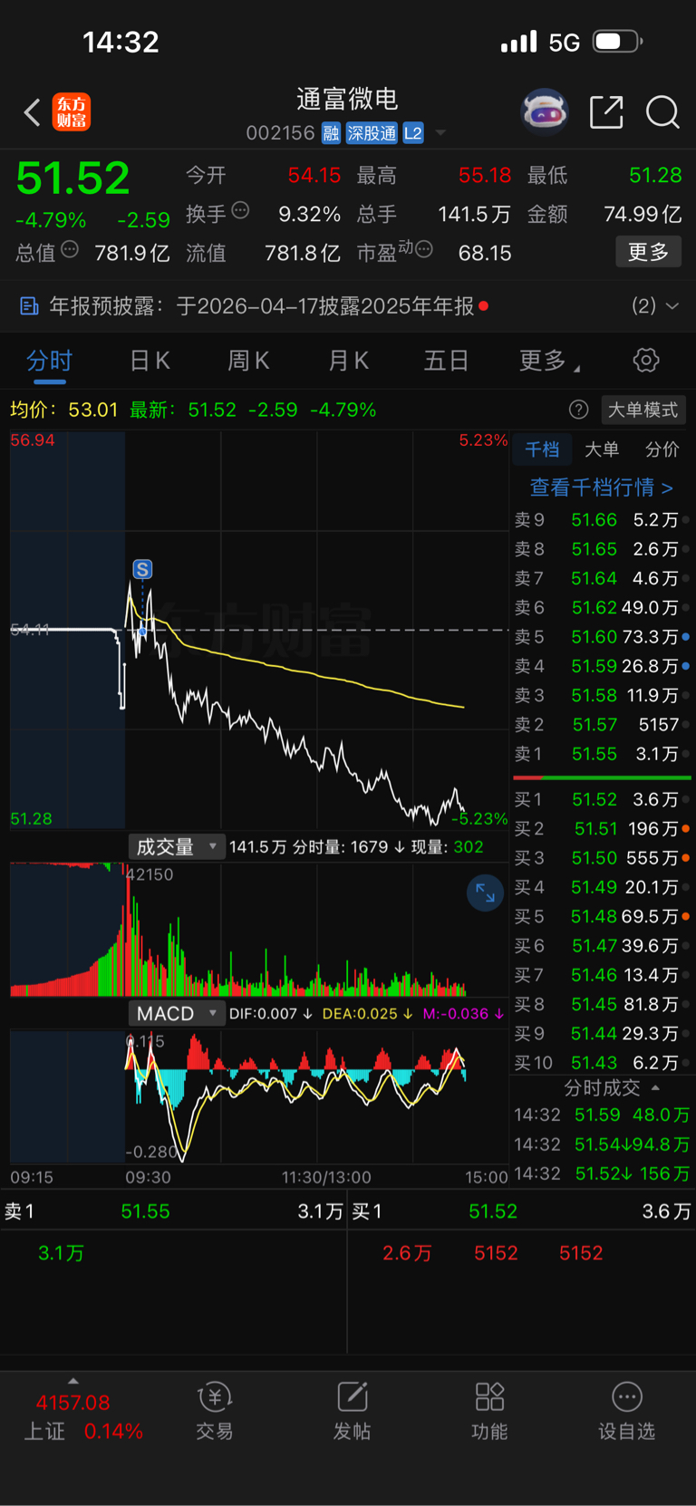 $通富微电(SZ002156)$ 还好早上跑了,买了神剑