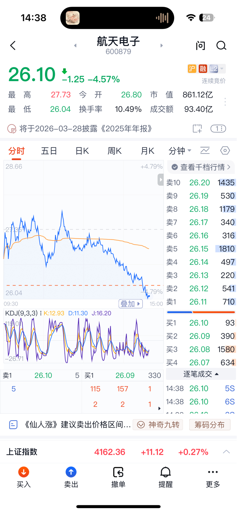 今天我这操作有水平没航天电子从最初的盈利20个点,一直到今天亏破成本线26.25